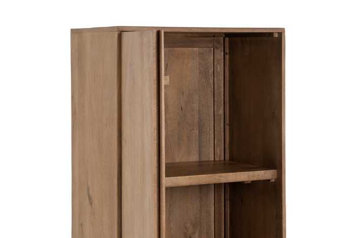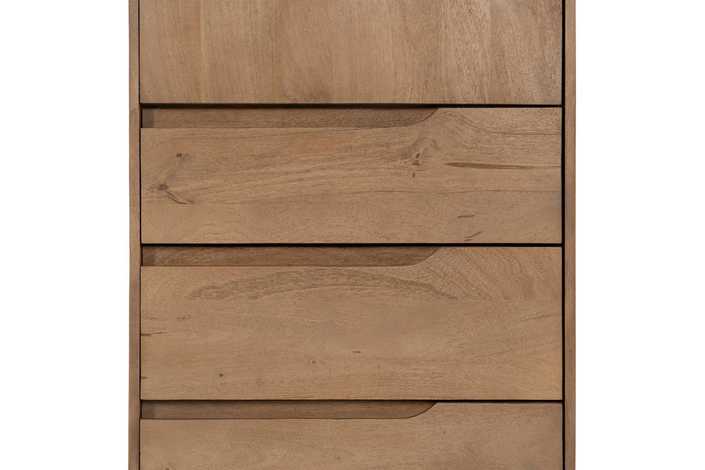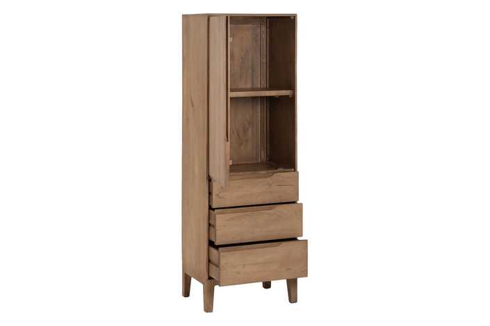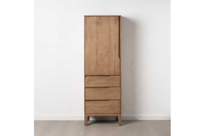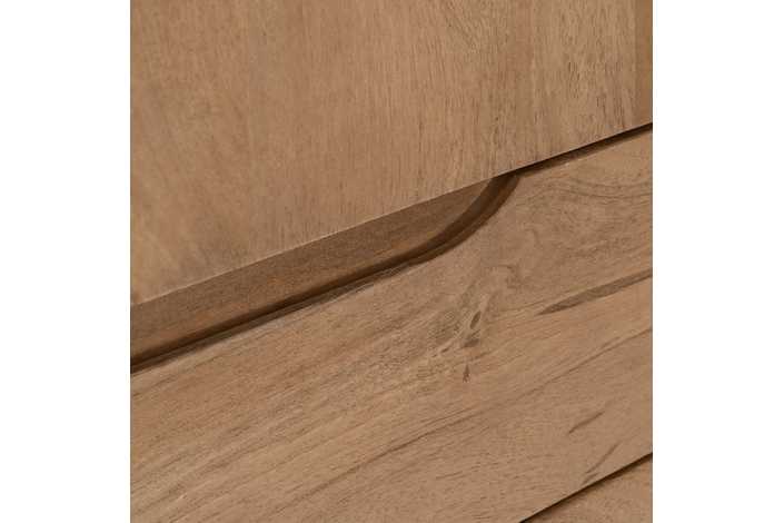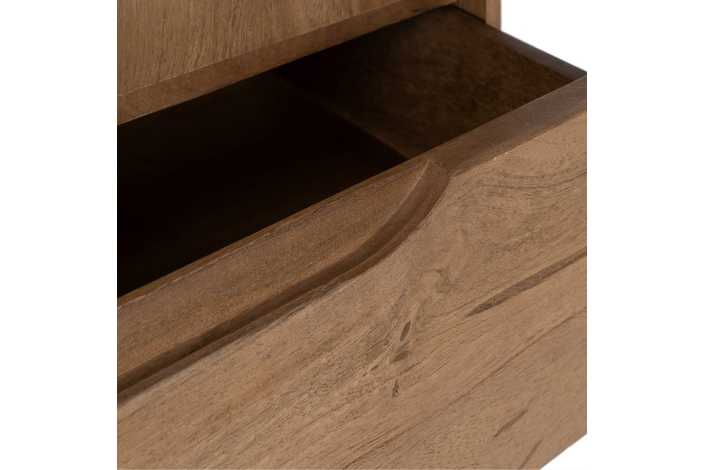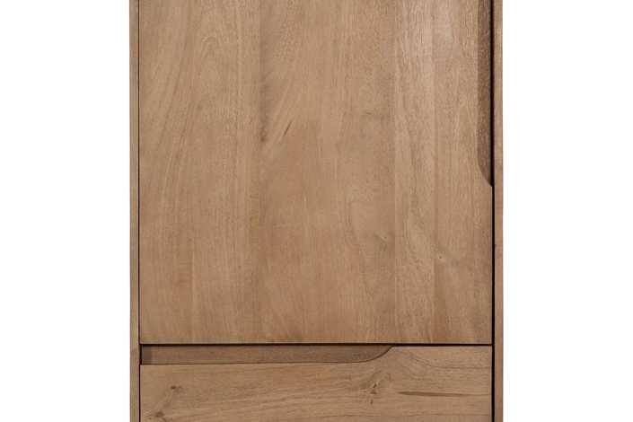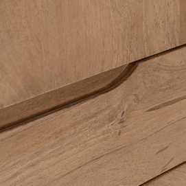 Material: madera de mango. Puerta: 57x95,5cm. Cajones: 57x19cm. Patas: 16cm.