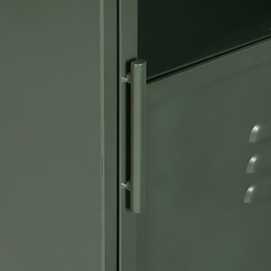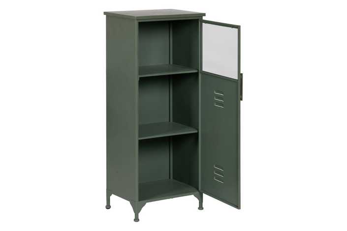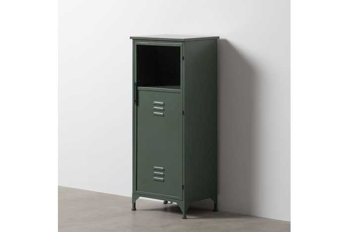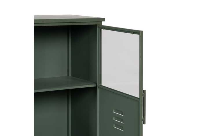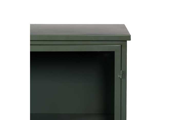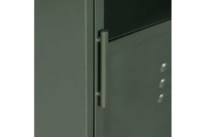 Material: hierro - cristal. Altura patas: 9.5cm. Medida puerta: 42.5x101.5cm. 2 lejas, altura huecos lejas: 30 - 34 - 34cm.