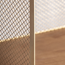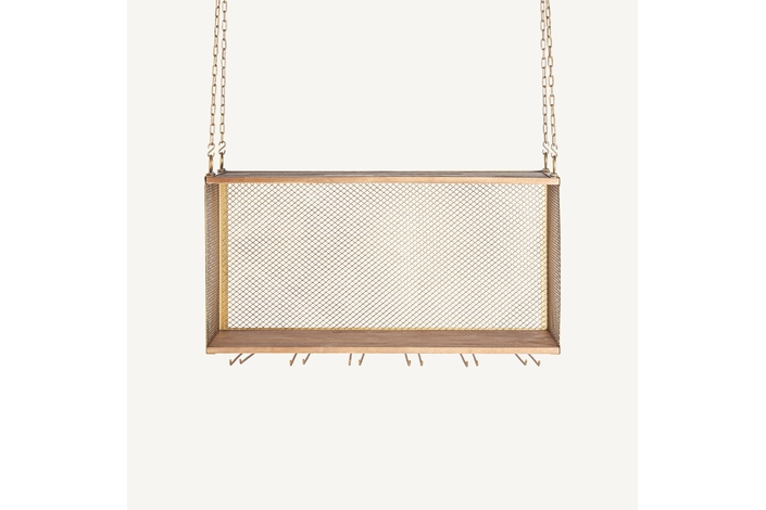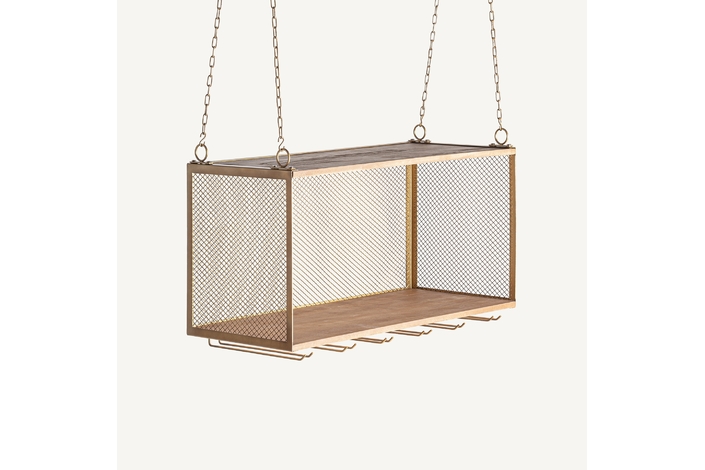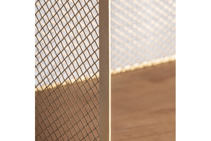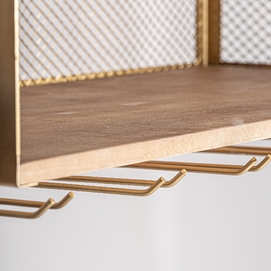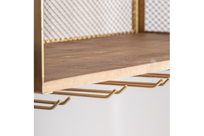 Mueble bar alleghe, en color oro, de estilo art deco. Fabricado en acero, combinado con madera roble. Producto elevable.