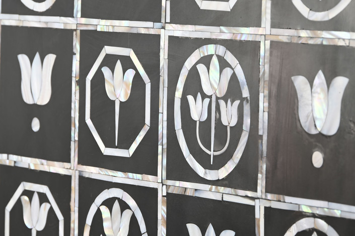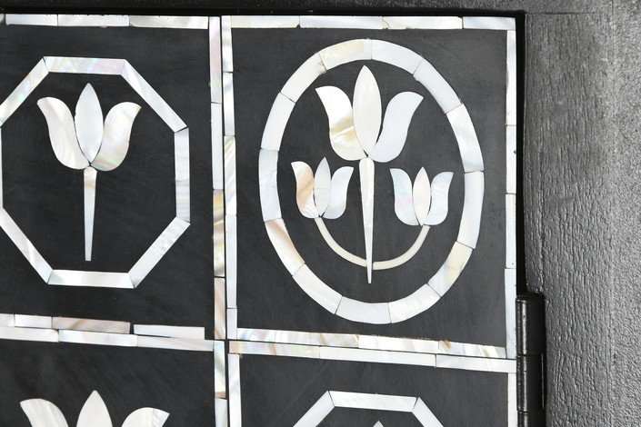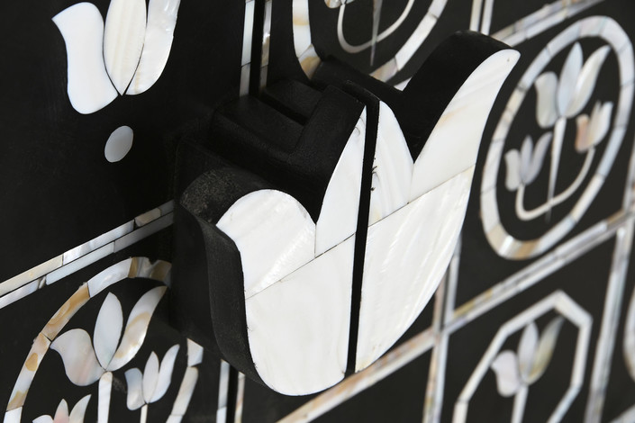 MUEBLE BAR HUESO HIERRO 80X40X153 TARACEA BICOLOR