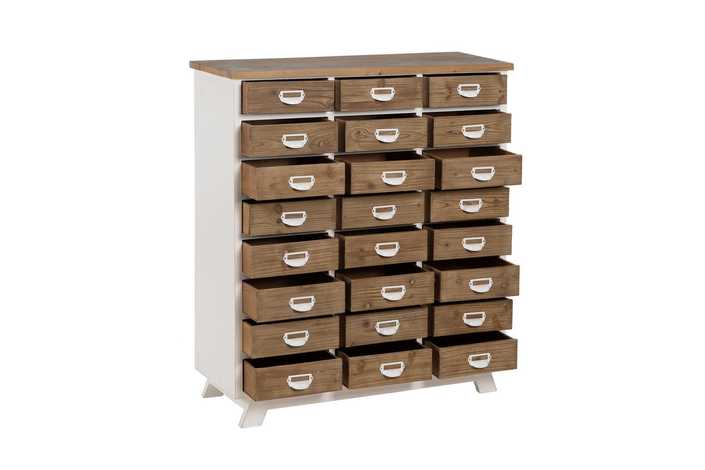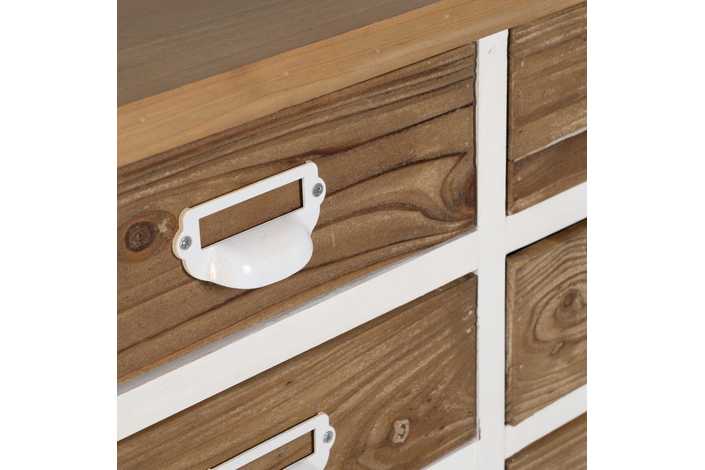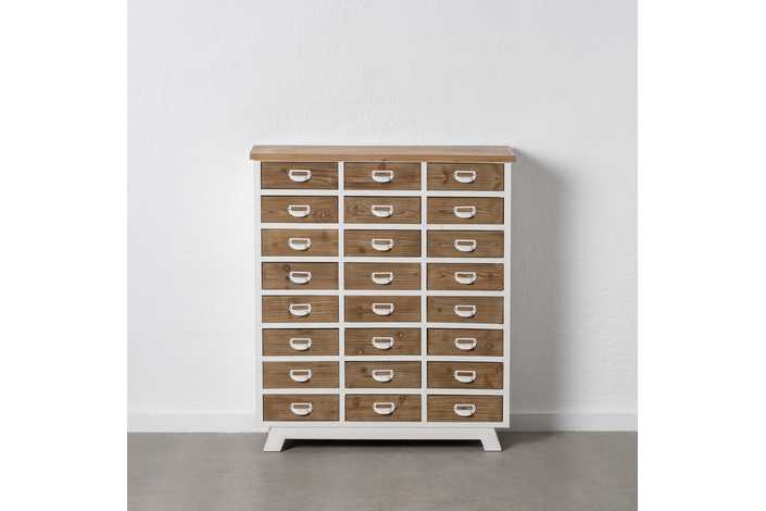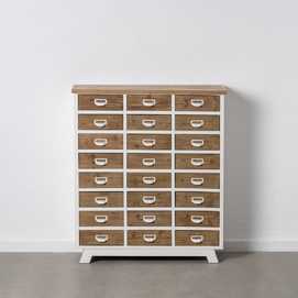 Material: madera de abeto - Dm - hierro Medida cajones: 27x9.5cm. Altura pata: 4.5cm.