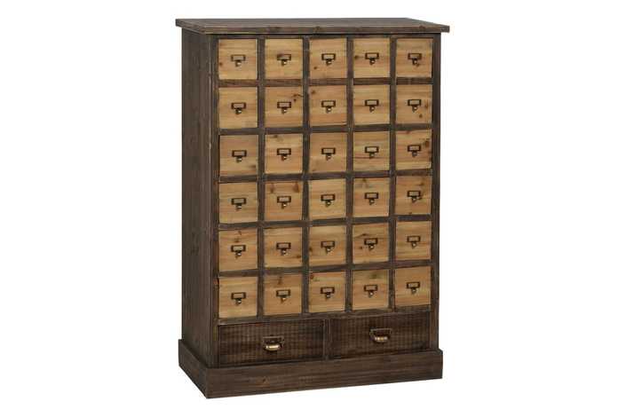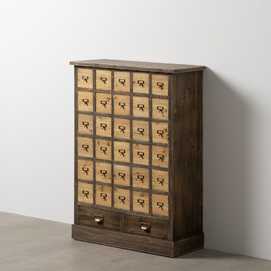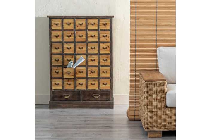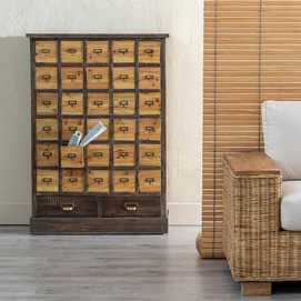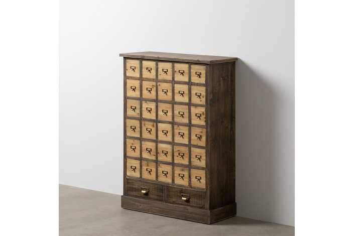Material: estructura principal madera de abeto - Dm. Medida cajones: 30 de 12.5x12.5 - 2 de 34x12cm.