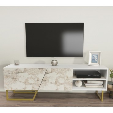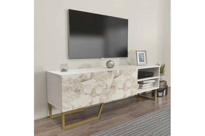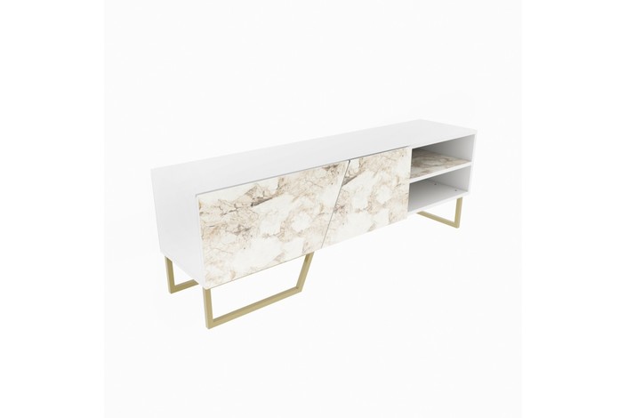 Mueble de TV MARCUS, biIaminado mármol blanco, 150 cms.