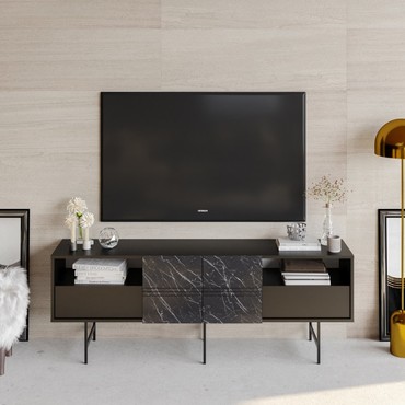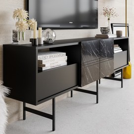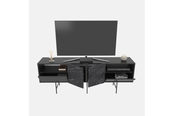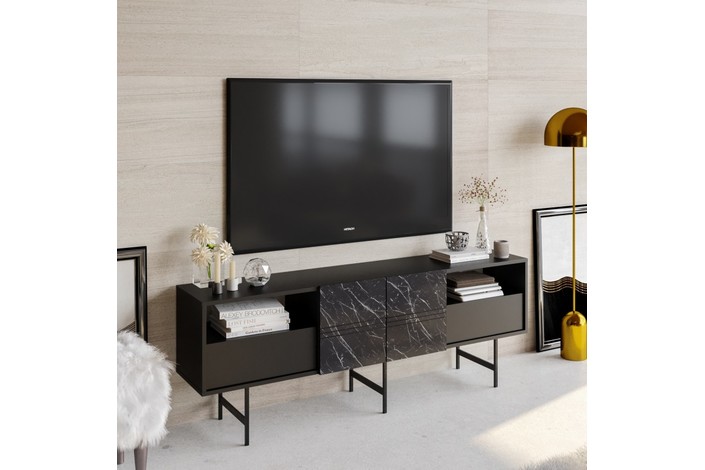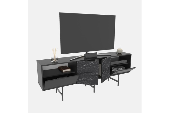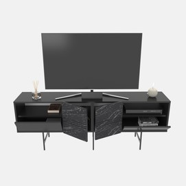 Mueble de TV SIMON, biIaminado mármol negro, 180 cms.