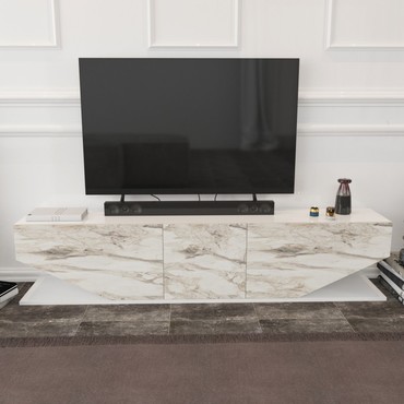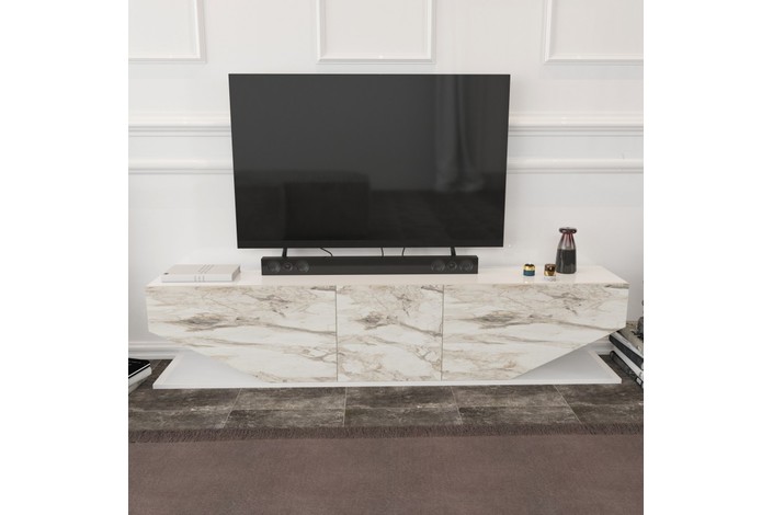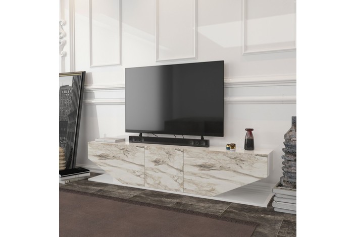 Mueble de TV VIOLET, biIaminado mármol blanco, 180 cms.