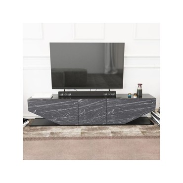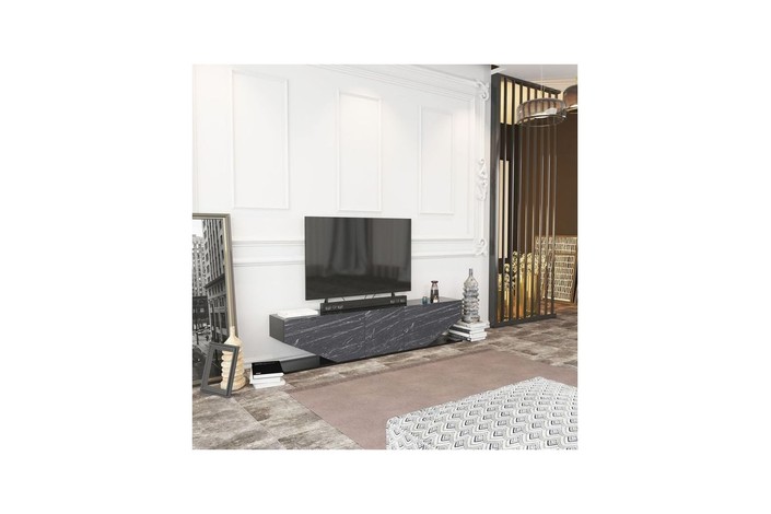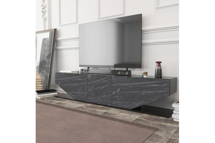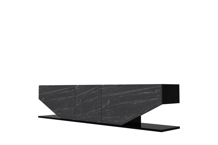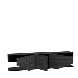 -Acabado bilaminado con 3 puertas frontales en mármol negro combinado con negro