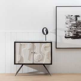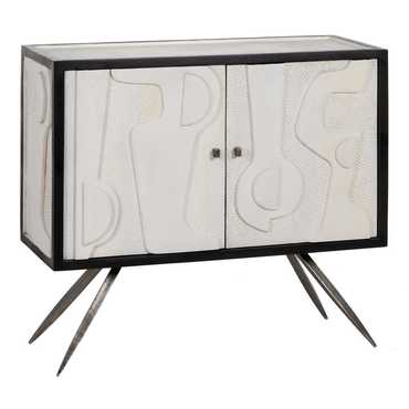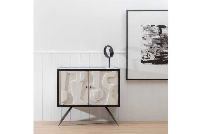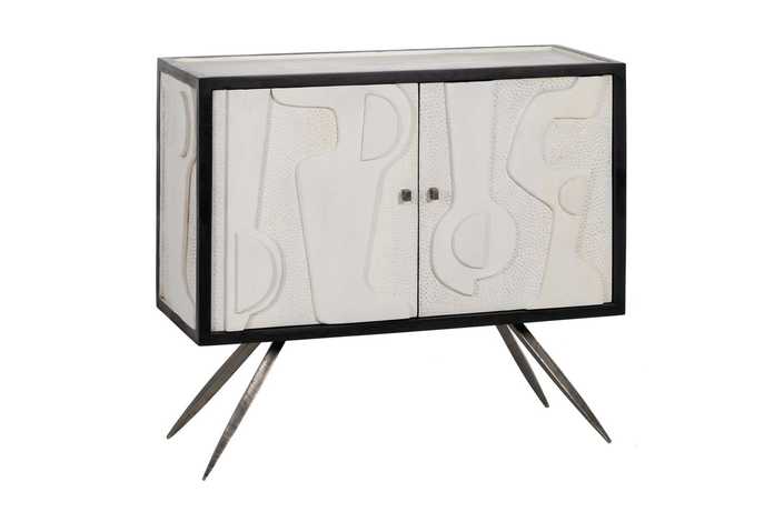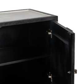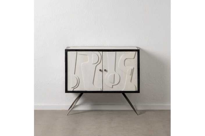 Material: madera de mango, hierro. Puertas: 48x55,5cm. Altura patas: 31,5cm.