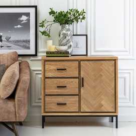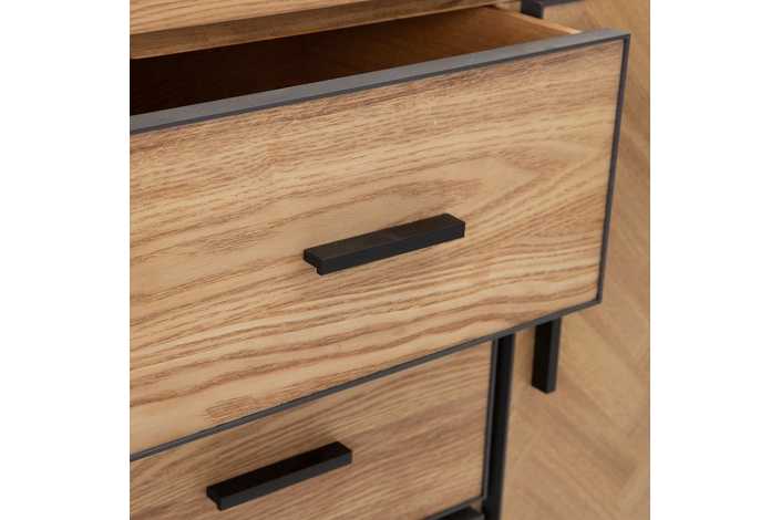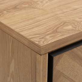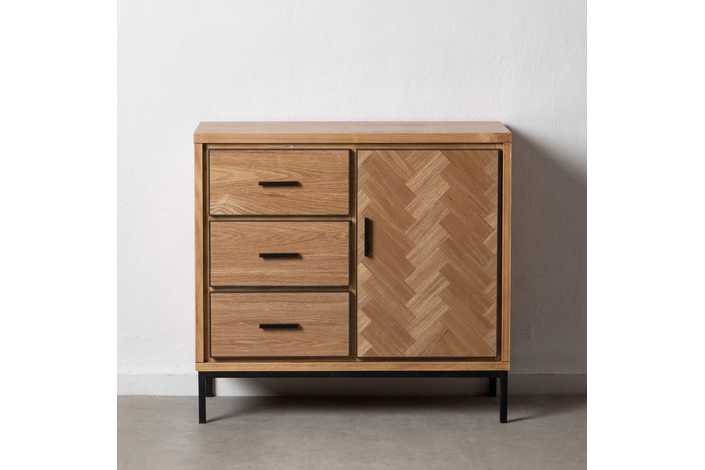 Material: Madera de fresno, metal, DM. Altura patas: 15.5cm. Patas para montar. Medida cajones: 40.5x19cm. Medida puerta: 40.5x60.5cm. Contiene leja interior, huecos: 45x29cm.