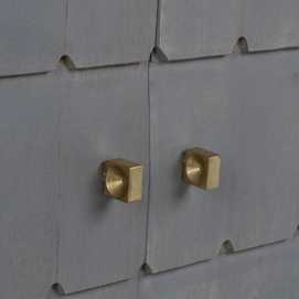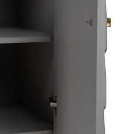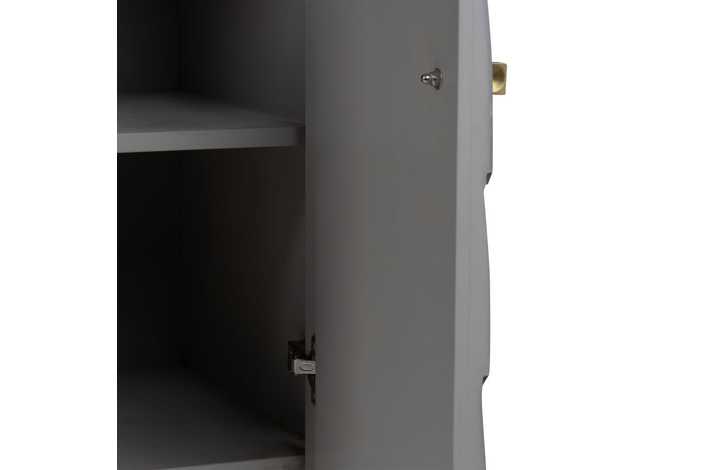 Material: madera de mango, hierro. Puertas: 33x59,5cm. Altura patas: 24,5cm. Altura balada interior: 28cm.