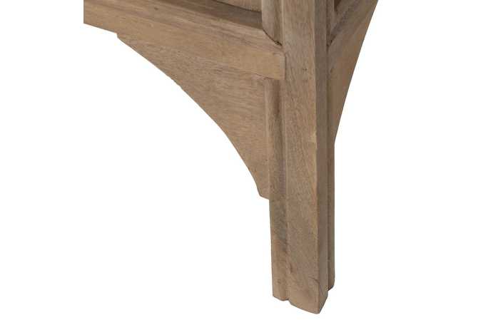 Material: madera de mango. Altura patas:22,5cm. Altura entre baldas interiores:43cm y 42,5cm.