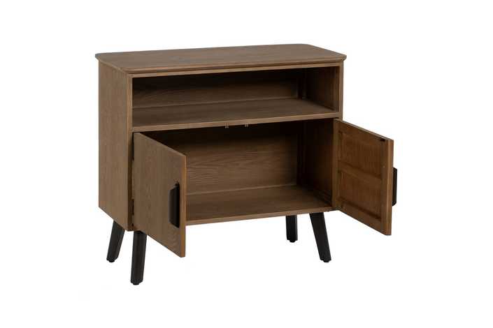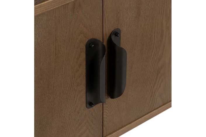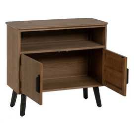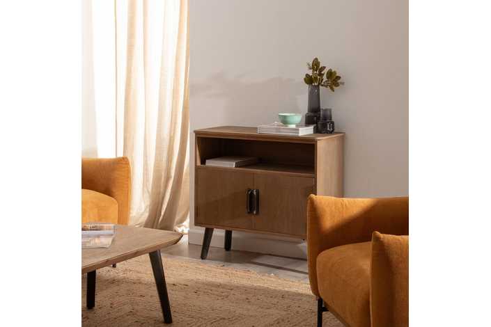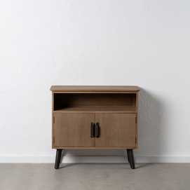 Material: madera de abeto - hierro Altura patas: 20cm. Medida hueco: 82x17.5cm. Medida puertas: 41x34.5cm. Precisa montaje.