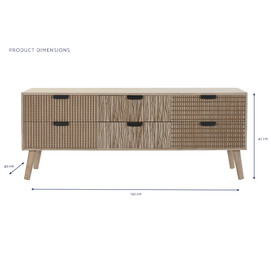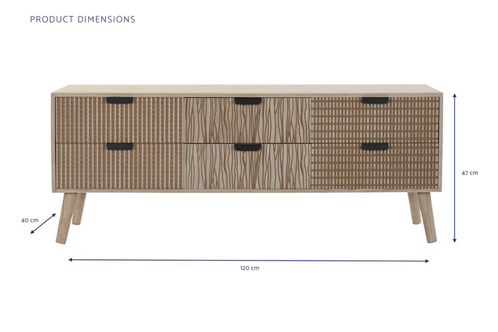 Dimensiones (cm) Longitud 120  |  Fondo 40  |  Altura 47 Peso neto producto (kg) 25,00 Material Abeto  |  Mdf