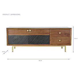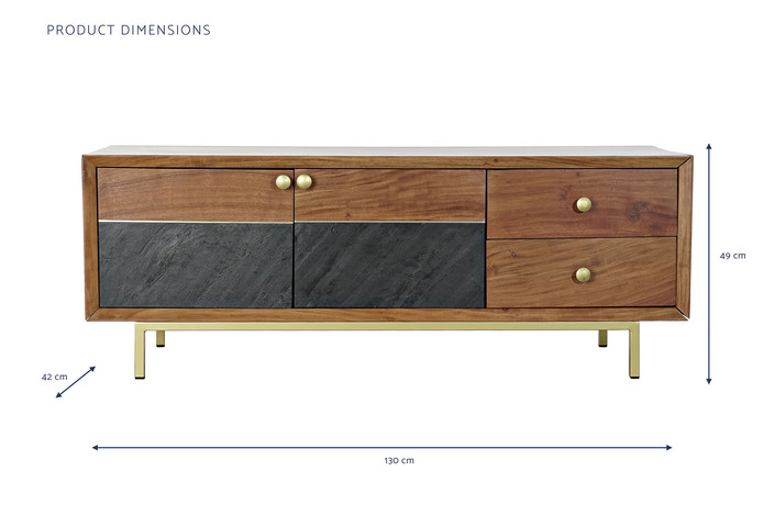 Dimensiones (cm) Longitud 130  |  Fondo 42  |  Altura 49 Peso neto producto (kg) 25,00 Material Acacia