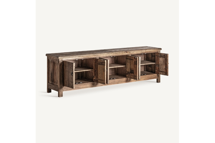 El Mueble Tv ANSUN de VICAL home no es solo un mueble; es una experiencia. Con 220x45x65cm, esta pieza no desmontable en madera de olmo reciclado y acabado natural envejecido, añade carácter y encanto rústico a tu sala, asegurando que tu sistema de entretenimiento tenga el trono que merece.