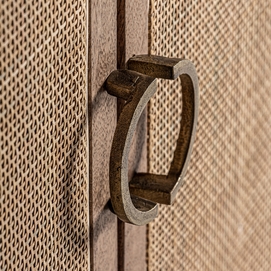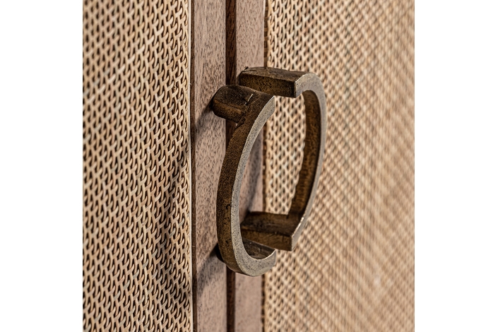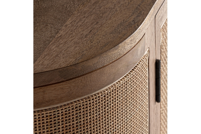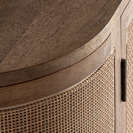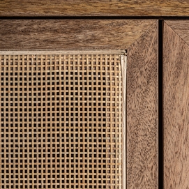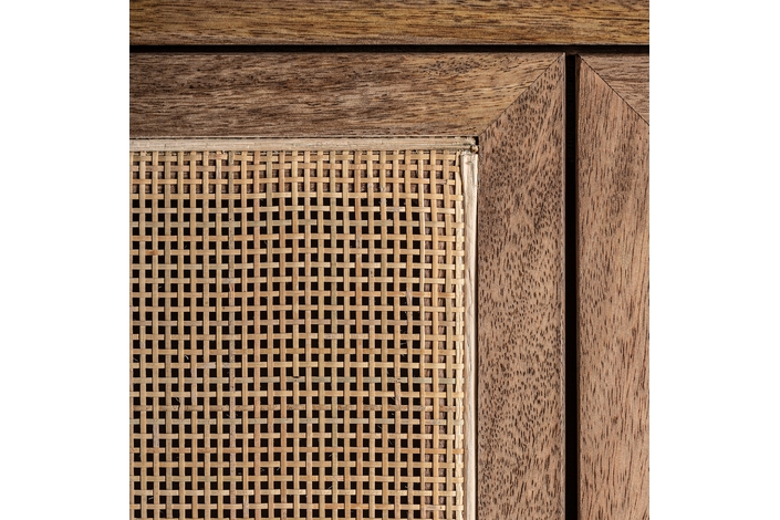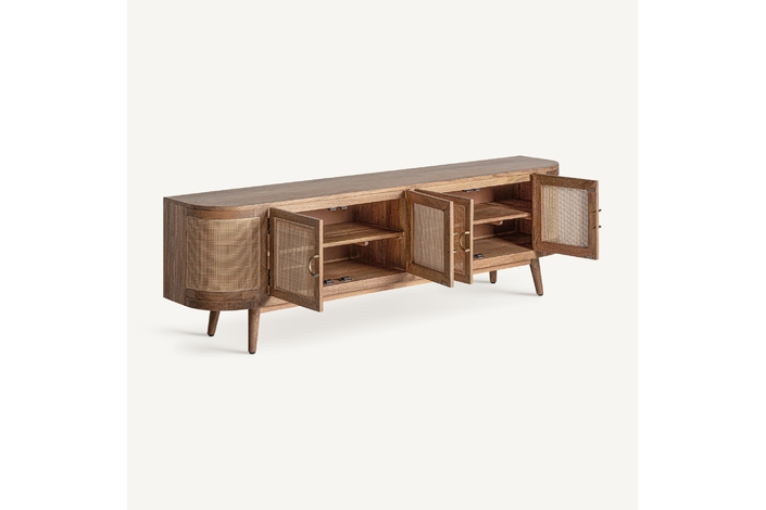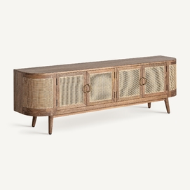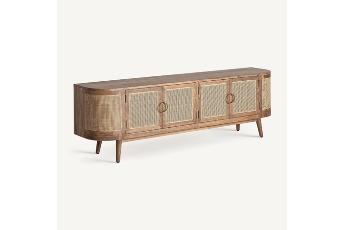 Mueble t. V. Beckley, en color marrón, de estilo nórdico. Fabricado en madera de mango y mimbre. Producto desmontable.
