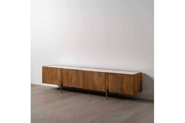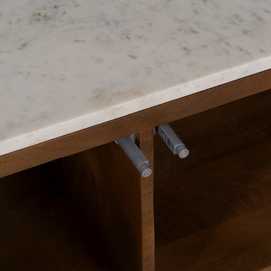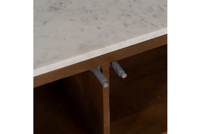 Material: madera de acacia, mármol, hierro. El mármol es un material natural que puede tener variaciones en su aspecto.