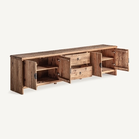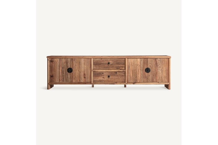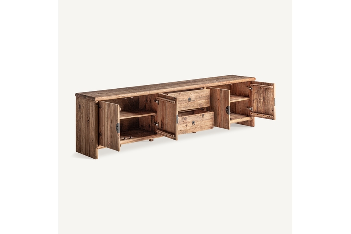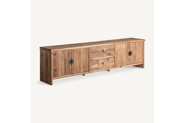 Mueble tv breive, de estilo rústico. Fabricado en madera de pino reciclado, en color marrón envejecido.