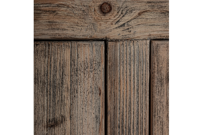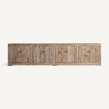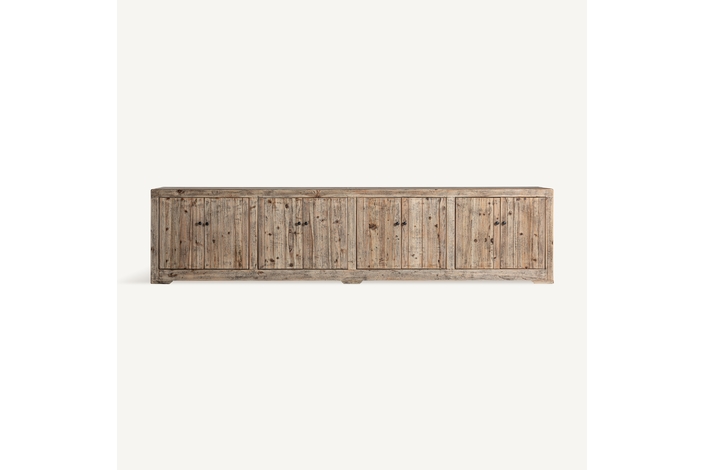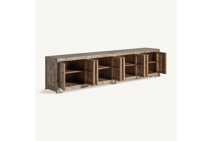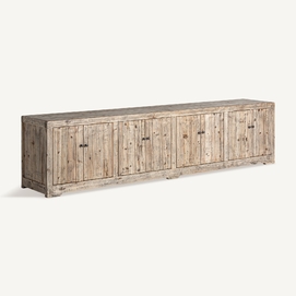Mueble tv cotswolds, de estilo rústico. Fabricado en madera de olmo reciclado, en color marrón claro desgastado.