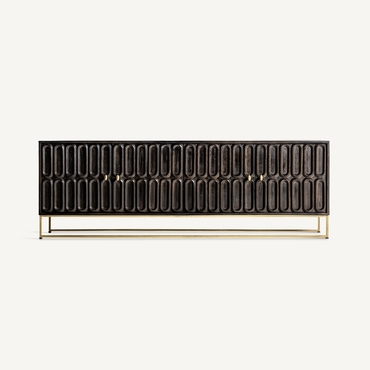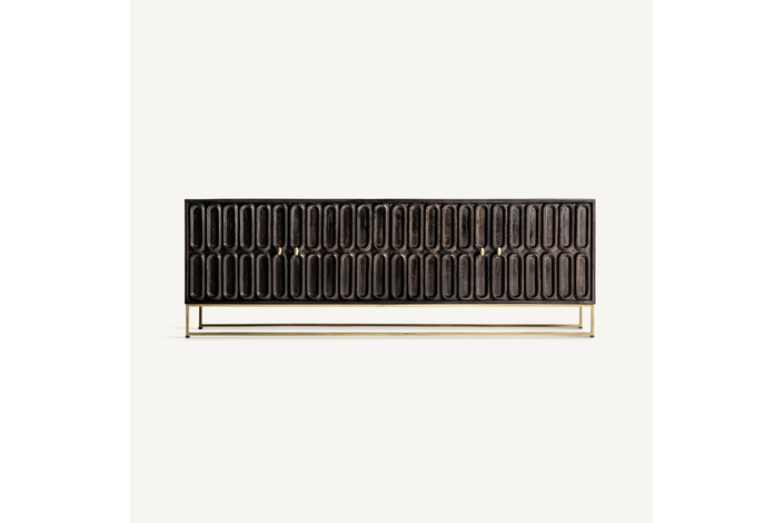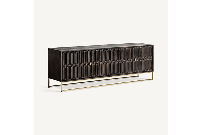 Descubre el mueble de televisor EMLY de VICAL Home, una pieza que combina elegancia y funcionalidad. Con dimensiones de 200x45x66 cm, este mueble, hecho de madera de mango con acabados en marrón y detalles en latón dorado, aporta un toque sofisticado y contemporáneo a cualquier sala. Su diseño robusto y atractivo, junto con su amplia superficie y almacenamiento, lo hacen perfecto para organizar tus dispositivos multimedia. No desmontable y originario de la India, este mueble es una inversión segura en estilo y calidad para tu hogar.