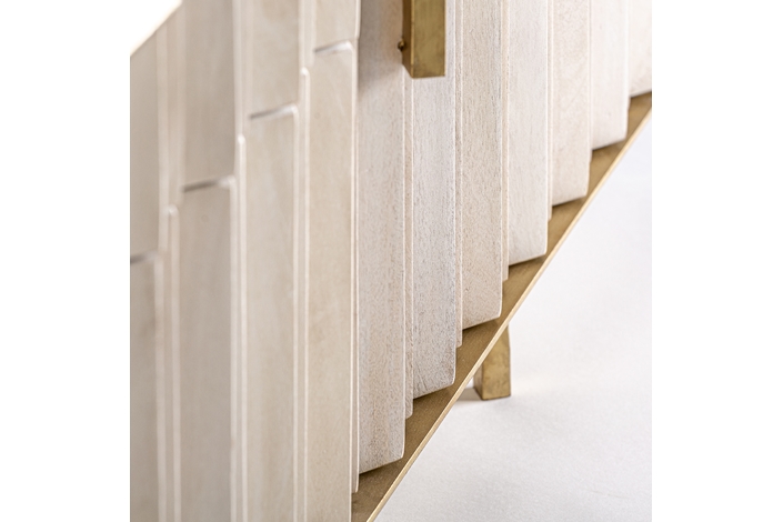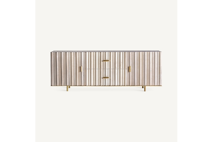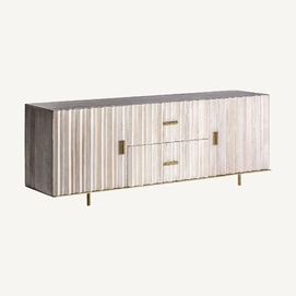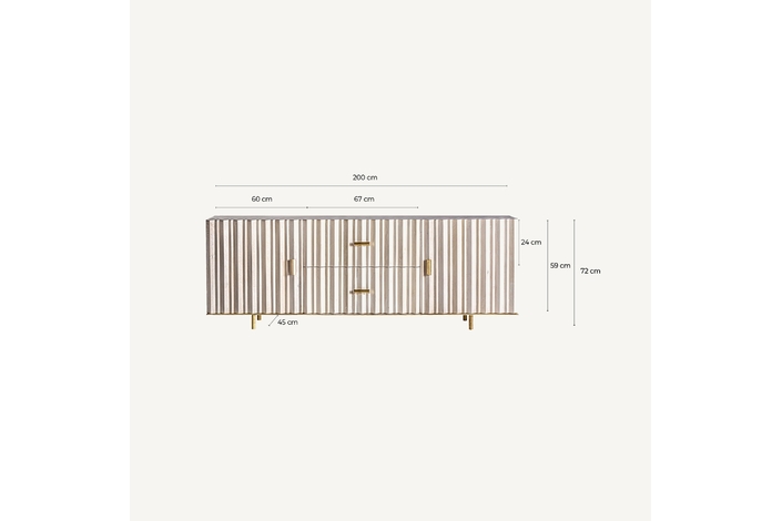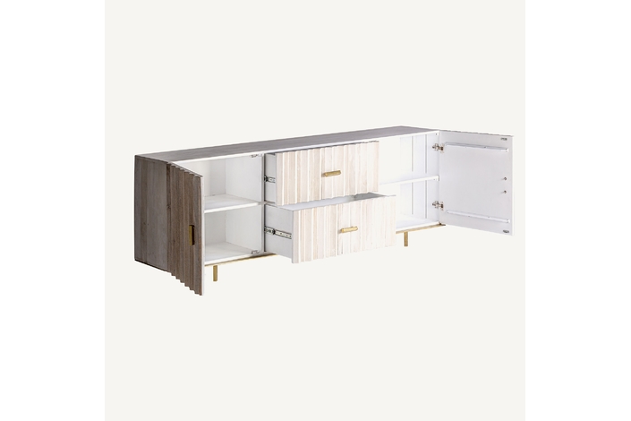 El Buffet GLEES de VICAL home, de 200x45x72cm, es una declaración de modernidad. Este mueble tv moderno no desmontable, combinando madera de mango y hierro, en tonos crema y oro, no solo ofrece almacenamiento elegante, sino que también sirve como una impresionante pieza central para cualquier habitación.