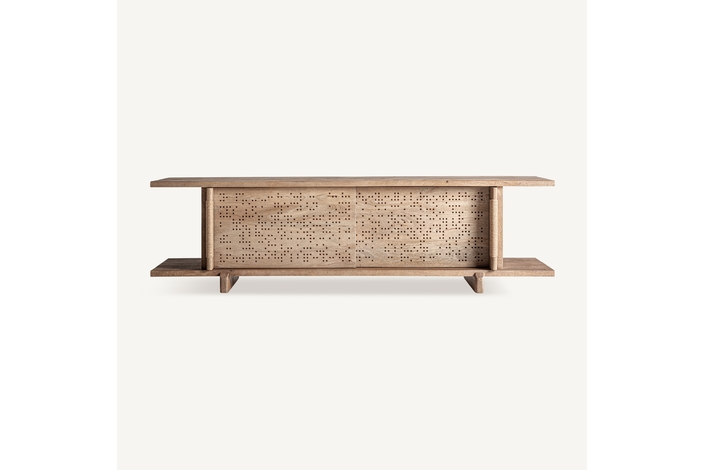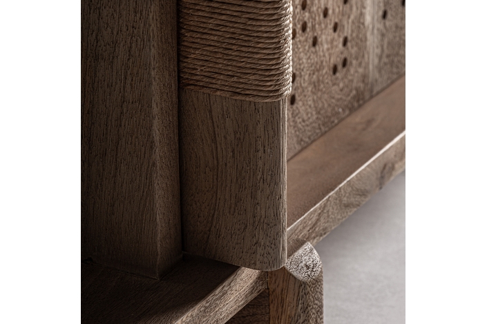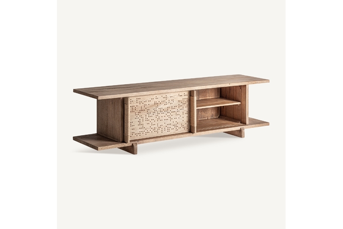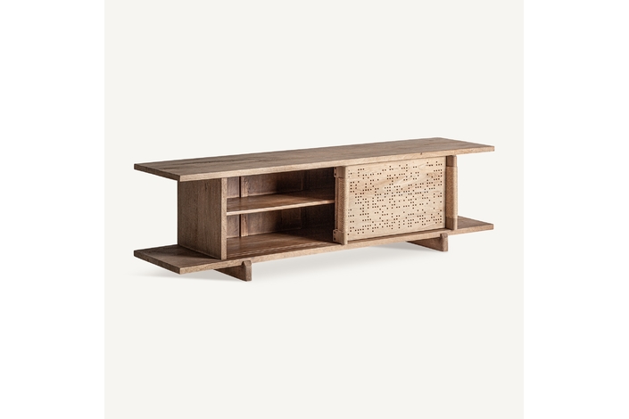 Mueble tv jacquard, de estilo contemporáneo. Fabricado en madera de mango, en color marrón claro.