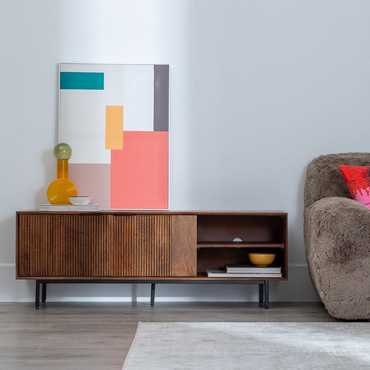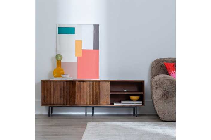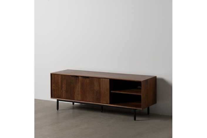 Material: madera de mango, hierro. Puertas: 46x32cm. Huecos: 46x15cm. Altura patas: 13cm.
