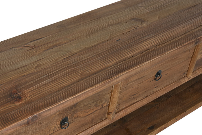 Dimensiones (cm) Longitud 200  |  Fondo 45  |  Altura 55 Peso neto producto (kg) 64,00 Material Madera reciclada  |  Pino