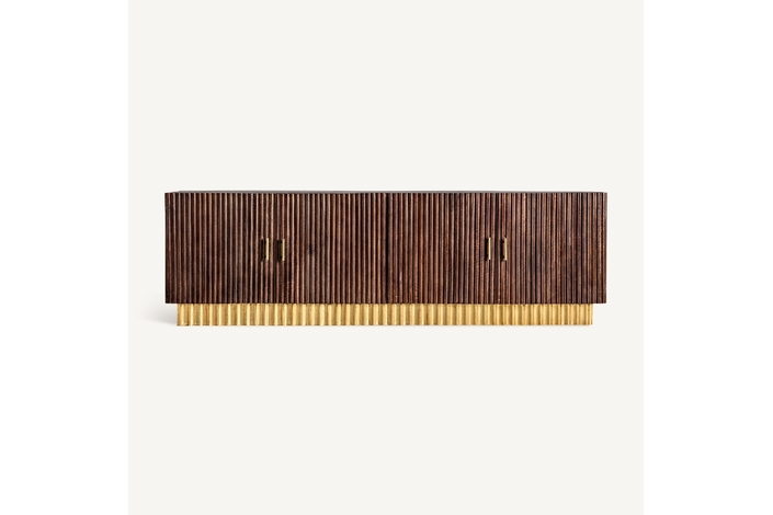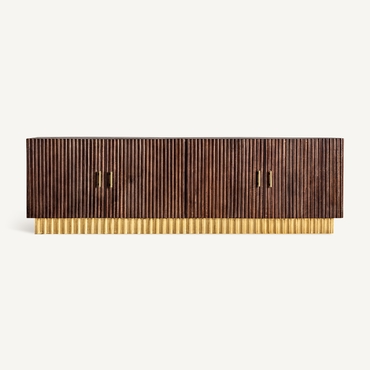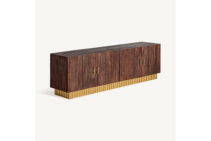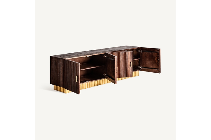 Introduce un toque de refinamiento con el Mueble Tv MESIA de VICAL home. De 200x42x62cm, esta pieza no desmontable en madera de mango de color marrón, se destaca no solo por su durabilidad sino también por su capacidad para complementar tu espacio de entretenimiento con una elegancia sutil.