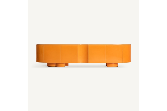 Mueble tv mirkov, de estilo contemporáneo. Fabricado en madera dm, en color naranja, combinado con hierro.