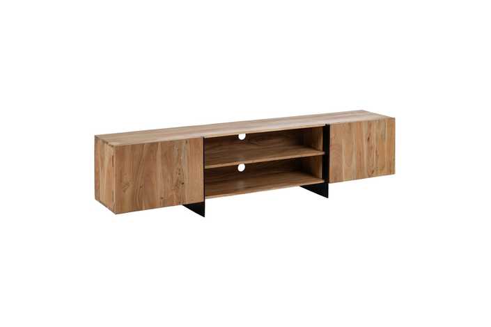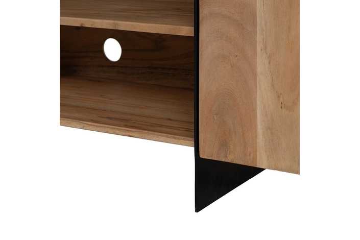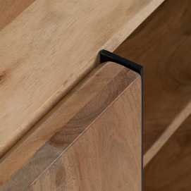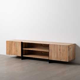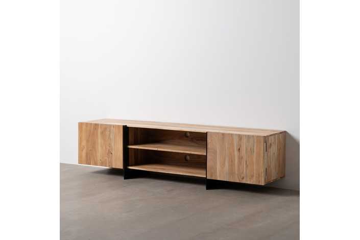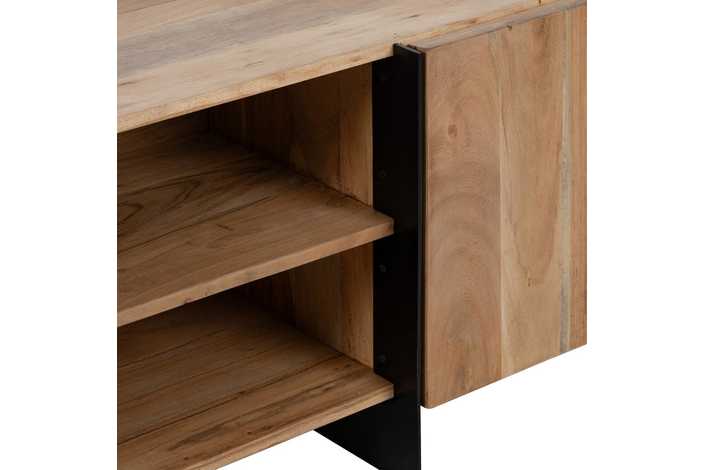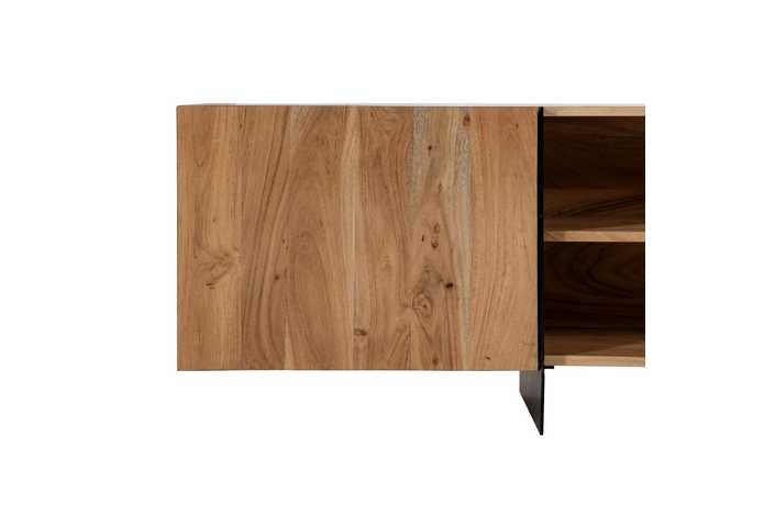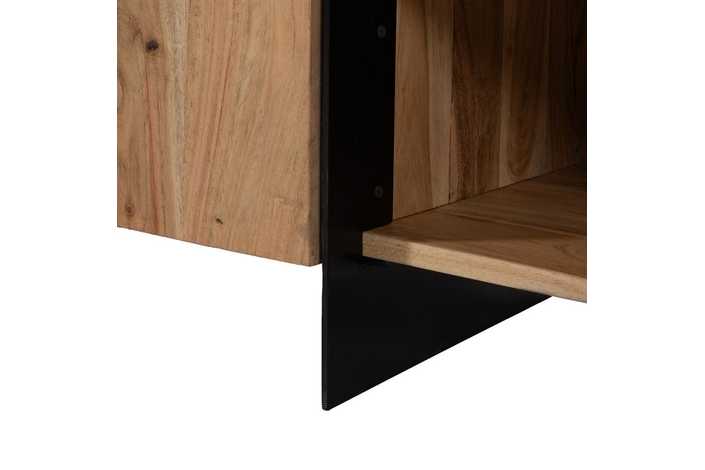 Material: madera de acacia, hierro. Puertas: 54x40cm. Huecos: 90x18cm. Altura patas: 10cm.