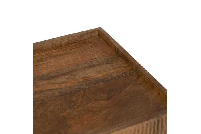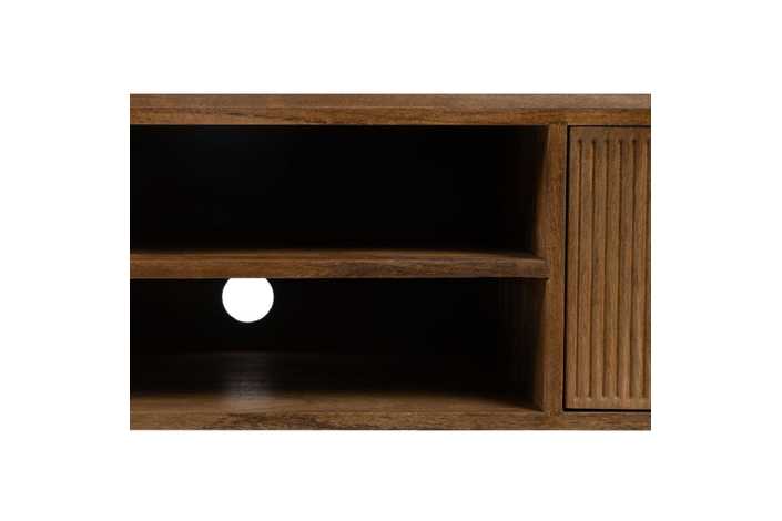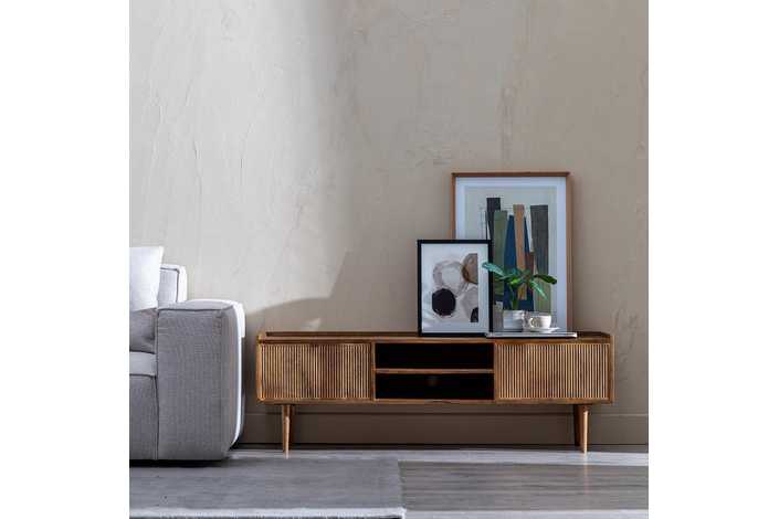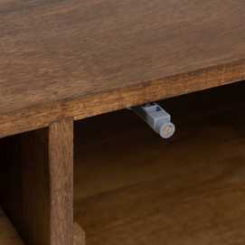 Material: madera de mango - trasera e interiores de los cajones Dm. Altura patas:21cm. Medida puertas:47x24cm. Huecos: 50x11,5cm. Las patas requieren montaje.