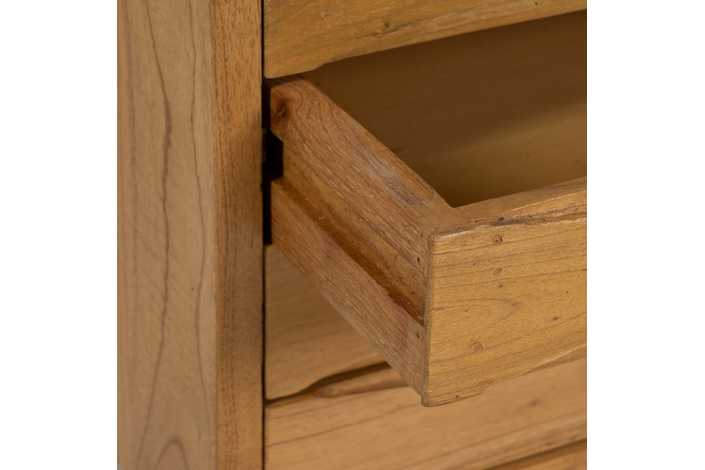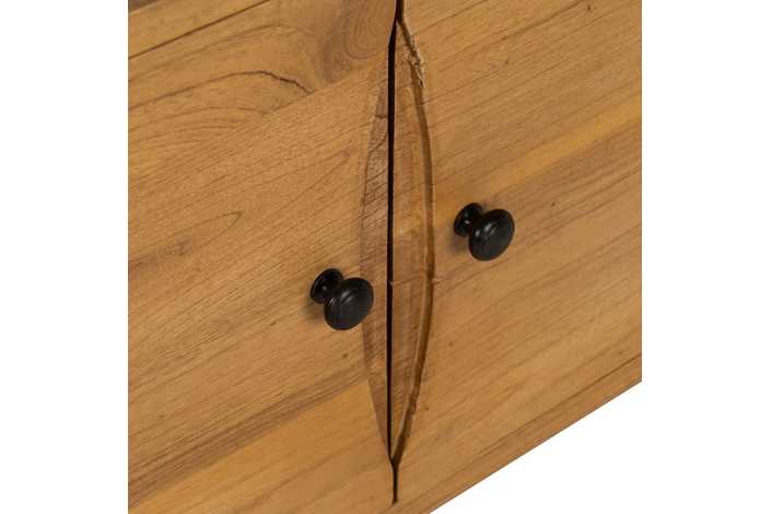 Material: madera de mindi. Cajones: 38x7,5cm. Puertas: 37,5x31cm. Altura patas: 11cm.