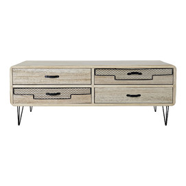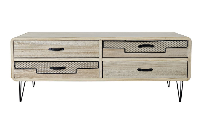Dimensiones (cm) Longitud 115  |  Fondo 61  |  Altura 43 Peso neto producto (kg) 23,50 Material Paulownia  |  Metal
