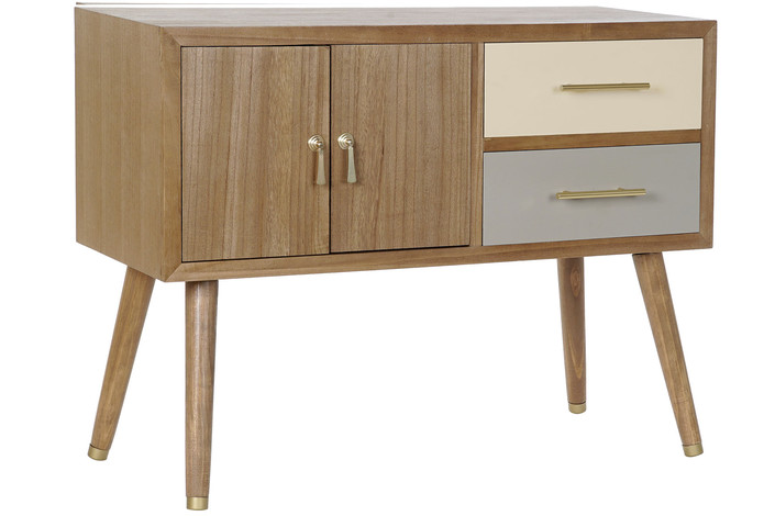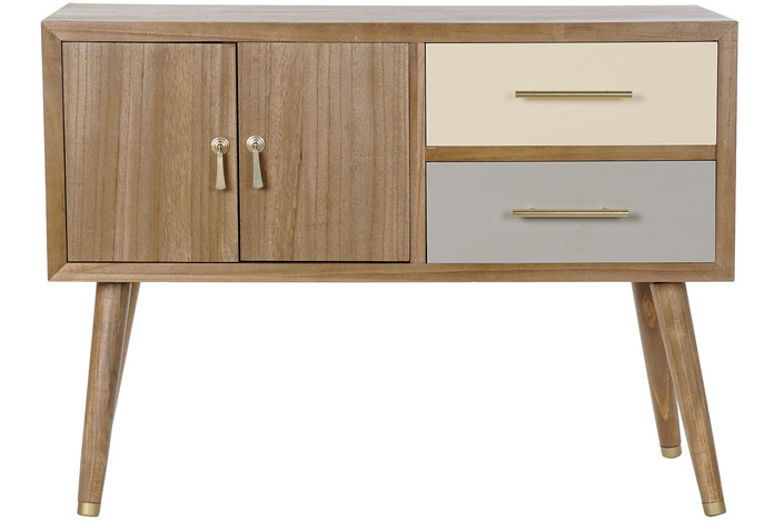 Dimensiones (cm) Longitud 90  |  Fondo 34  |  Altura 66,5 Peso neto producto (kg) 19,00 Material Paulownia  |  Metal