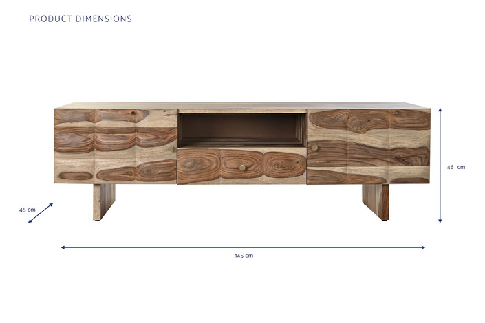 Dimensiones (cm) Longitud 145  |  Fondo 45  |  Altura 46 Material Sheesham