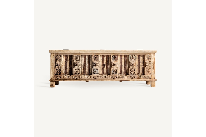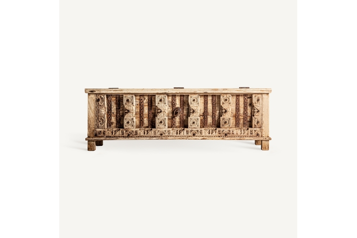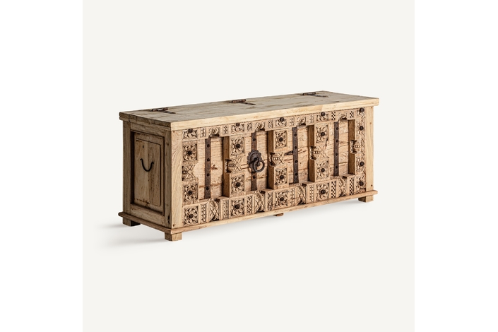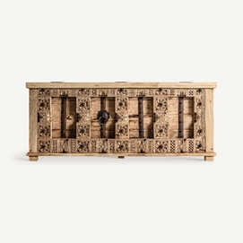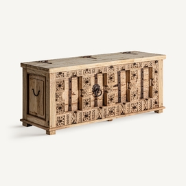 Invita al exotismo a tu sala con el Mueble T.V. PHALODI de VICAL home. Esta mesa tv oriental no desmontable de 171x53x63cm, realizado en madera de mango con un acabado natural envejecido, captura la esencia del estilo oriental. Su diseño artesanal y sus detalles únicos lo convierten en más que un mueble, una pieza de arte en tu hogar.