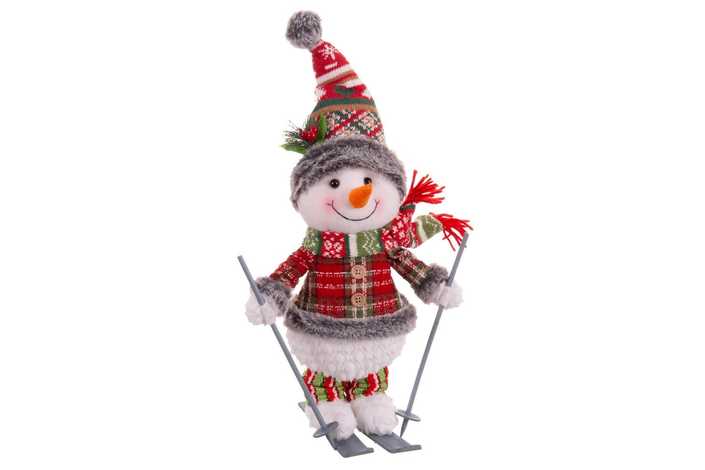 MUÑECO NIEVE ESQUÍS POLIESTER 21 X 19 X 46 CM
