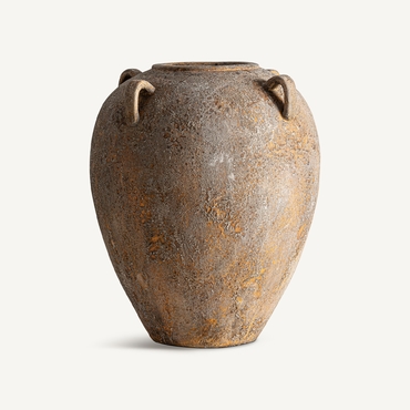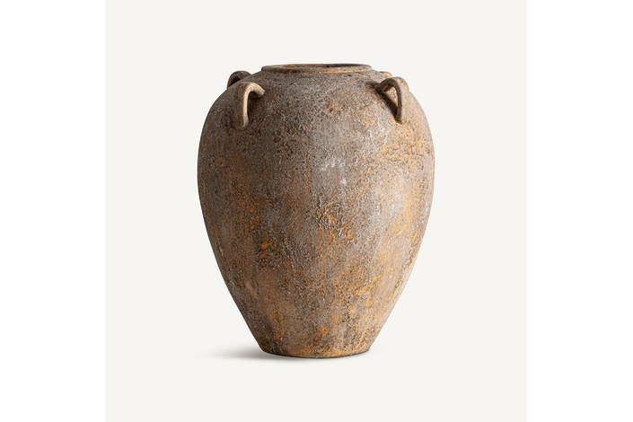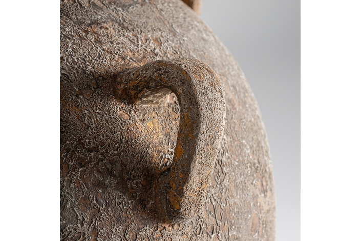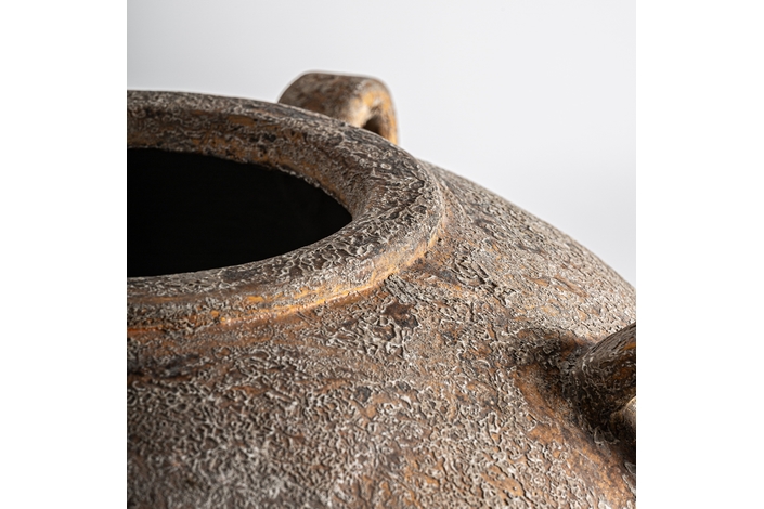 Ánfora de estilo clásico, fabricado en hormigón armado en color tonos en marrón con acabado envejecido.