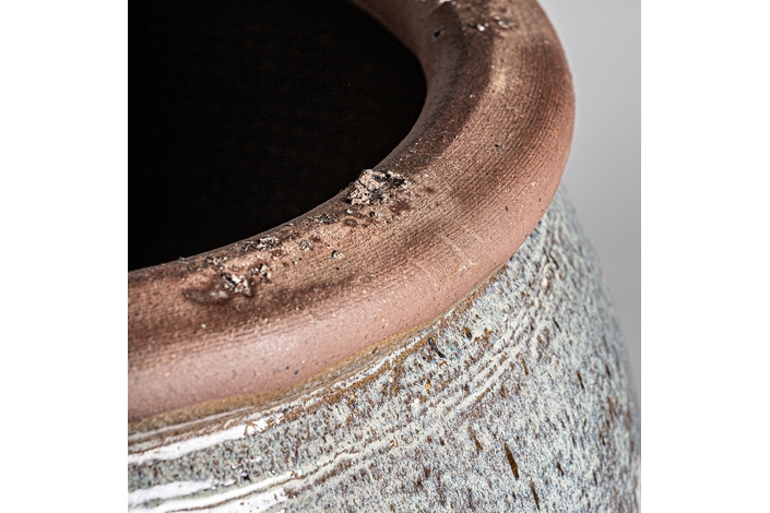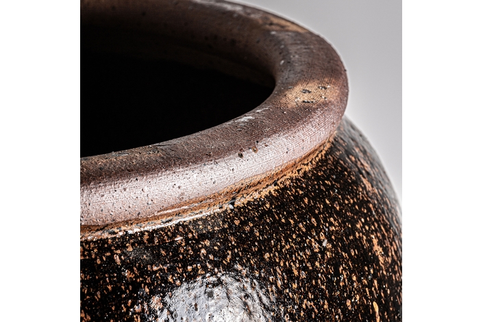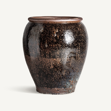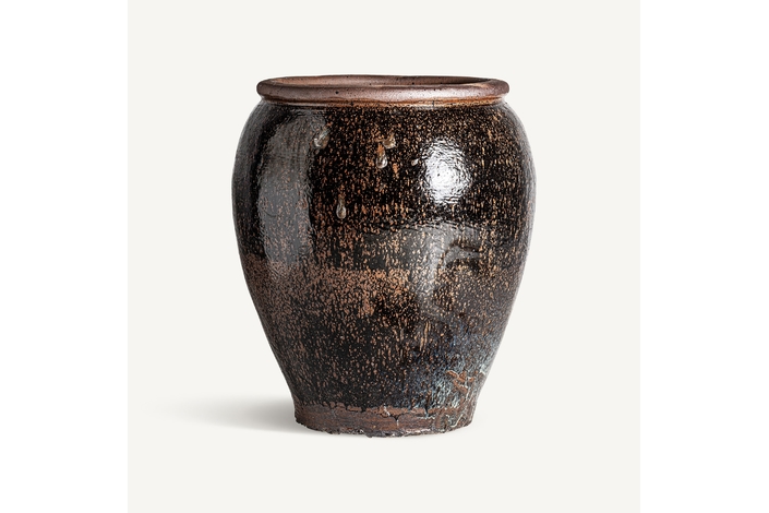 Ánfora surt anquelina, en color tonos en marrón, de estilo colonial. Fabricado en cerámica.