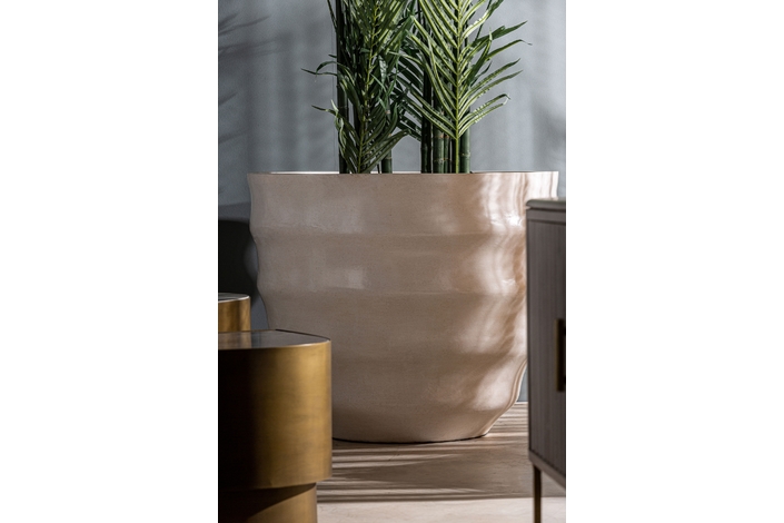 Ánfora vasto, en color blanco, de estilo contemporáneo. Fabricado en terrazo.