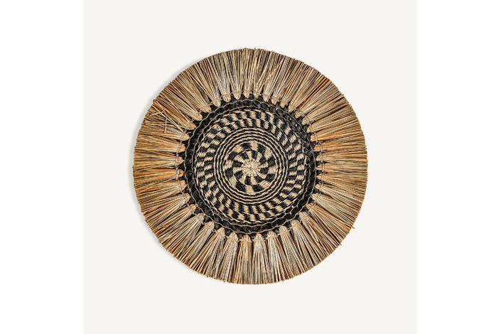Panel decorativo, en color natural, de estilo étnico. Fabricado en rafia.