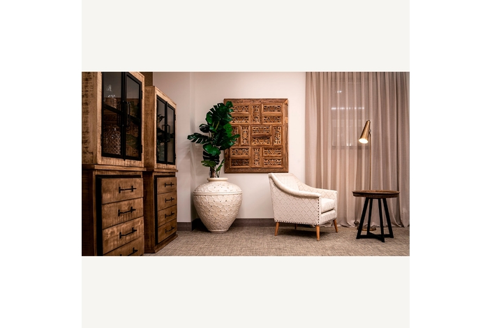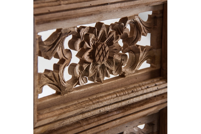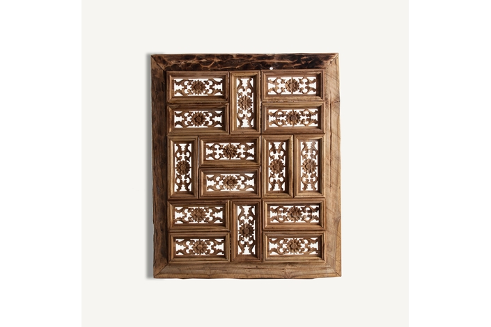 Panel decorativo cuadrado abay, en color natural envejecido, de estilo étnico. Fabricado en madera tropical.