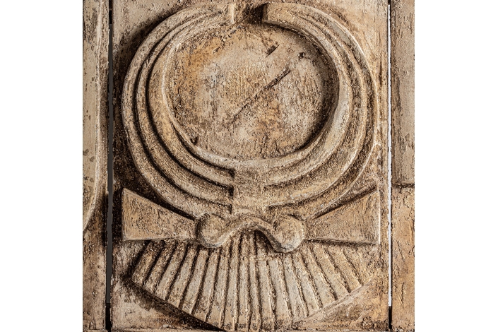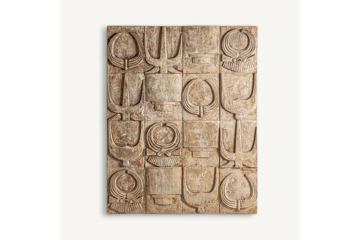 Panel decorativo akarit, de estilo étnico. Fabricado en madera suar, en color marrón claro natural.