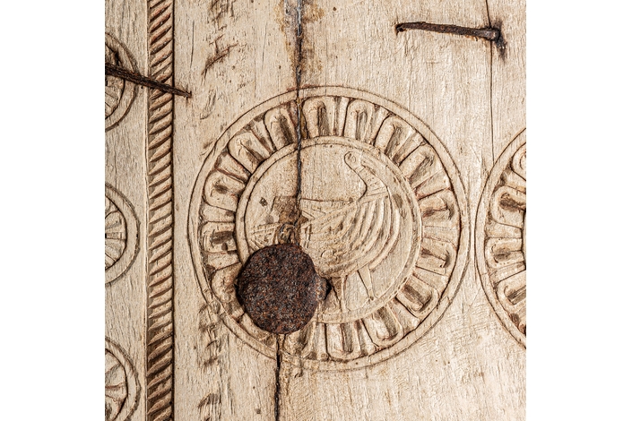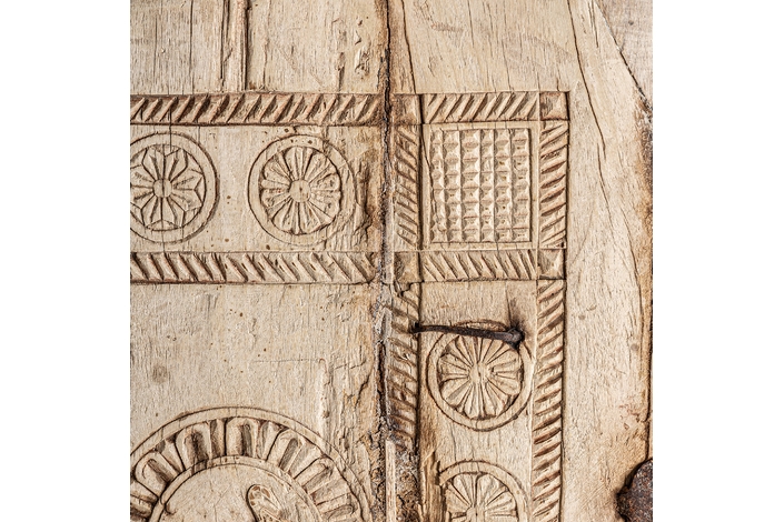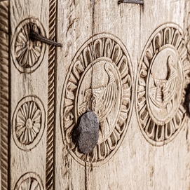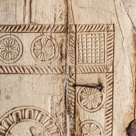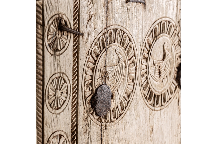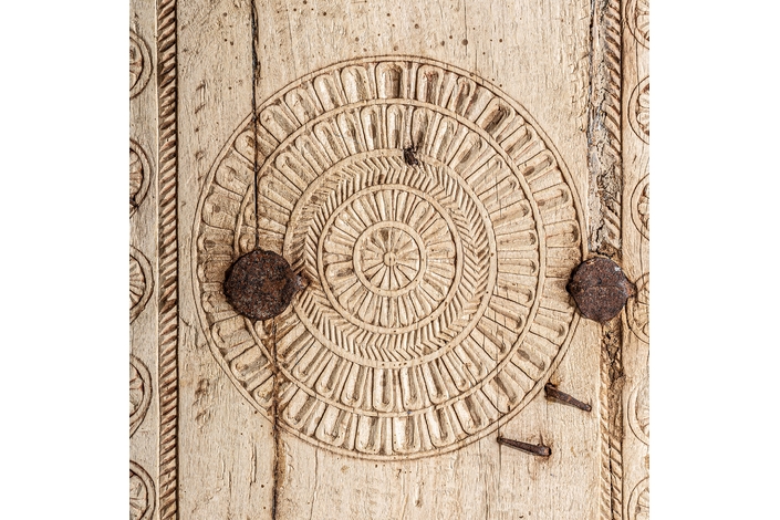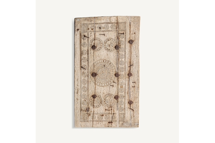 Panel decorativo askale, en color marrón envejecido, de estilo étnico. Fabricado en madera de teka.