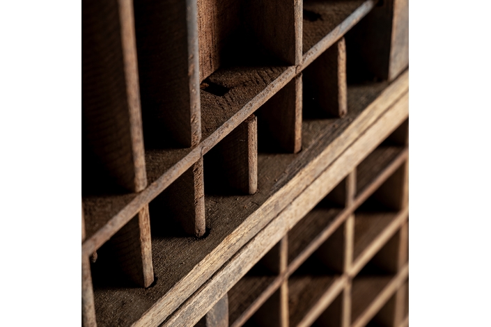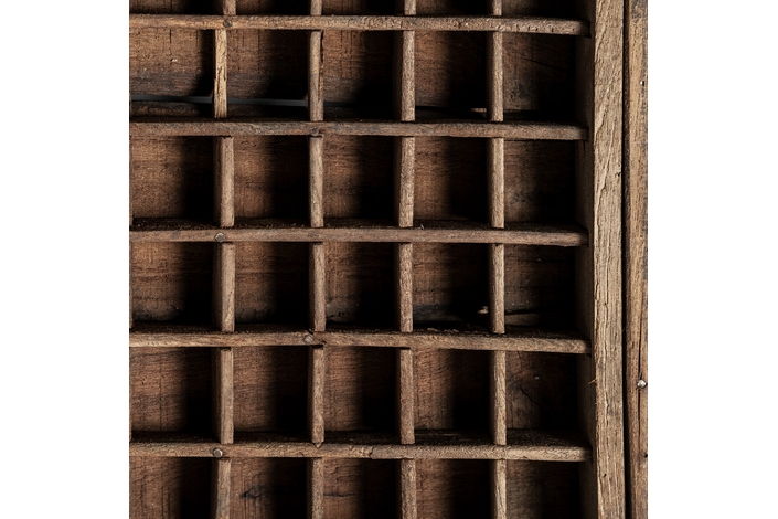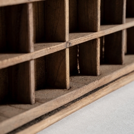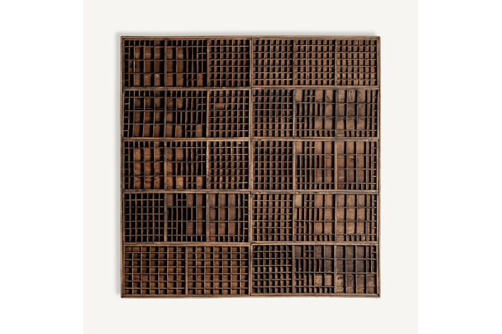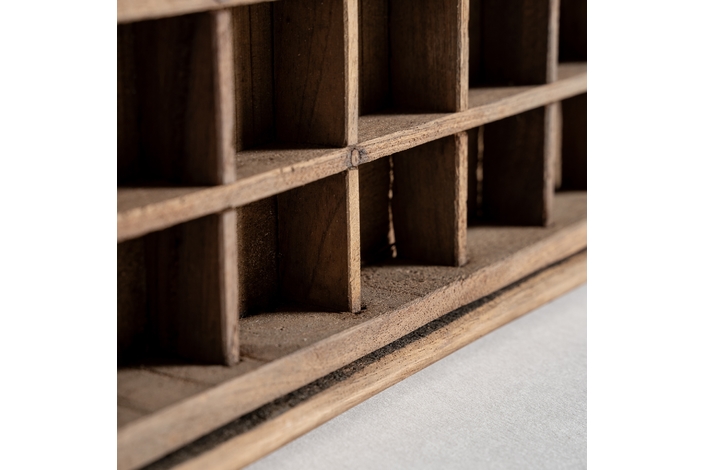 Panel decorativo kashere, en color marrón natural, de estilo étnico. Fabricado en madera recuperada.