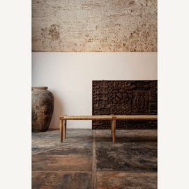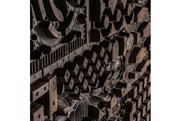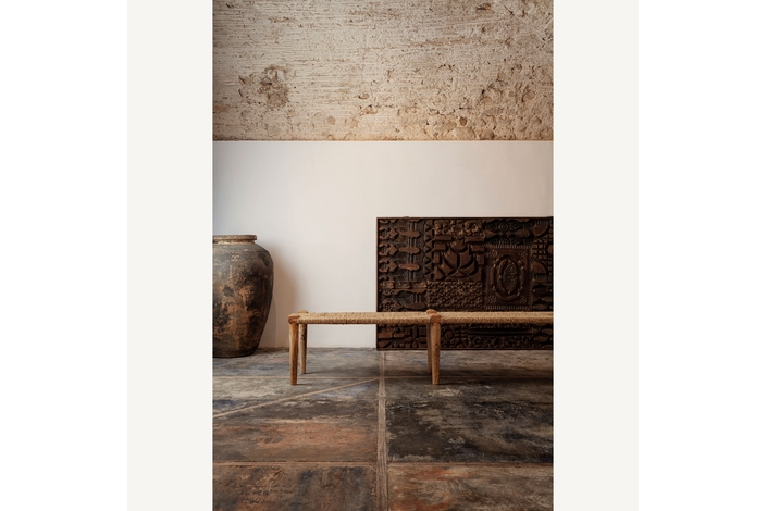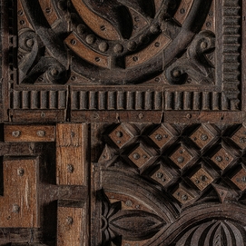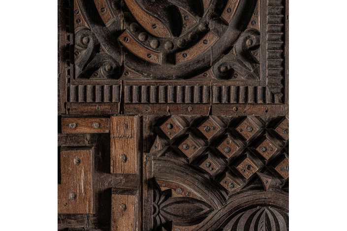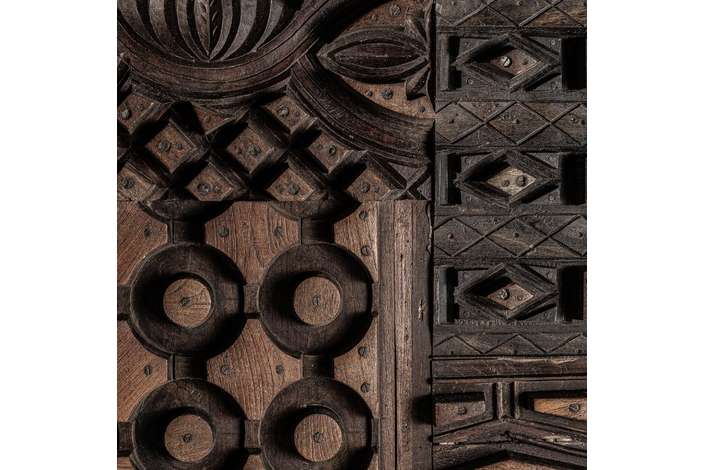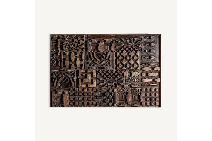 Panel decorativo kissey, en color marrón tallado, de estilo étnico. Fabricado en madera de mango.