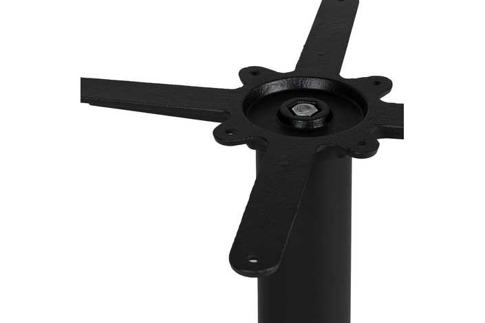 Material: hierro fundido. Soporte tablero: 45x45cm. Diámetro tubo: 7,6cm. Base: 42x42cm. Apto para tableros cuadrados hasta 70x70cm y tableros redondos hasta diámetro 80cm.