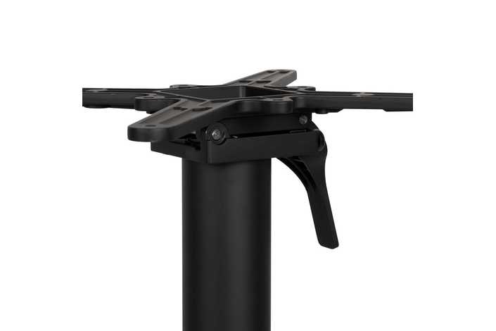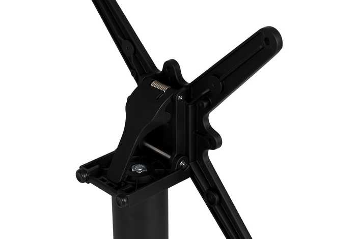 Material: aluminio. Soporte tablero: 45x45cm. Diámetro tubo: 7cm. Base: 62x62cm. Plegable. Apto para tableros cuadrados hasta 70x70cm y tableros redondos hasta diámetro 80cm. No apto para sobres muy pesados. Apto para uso exterior.
