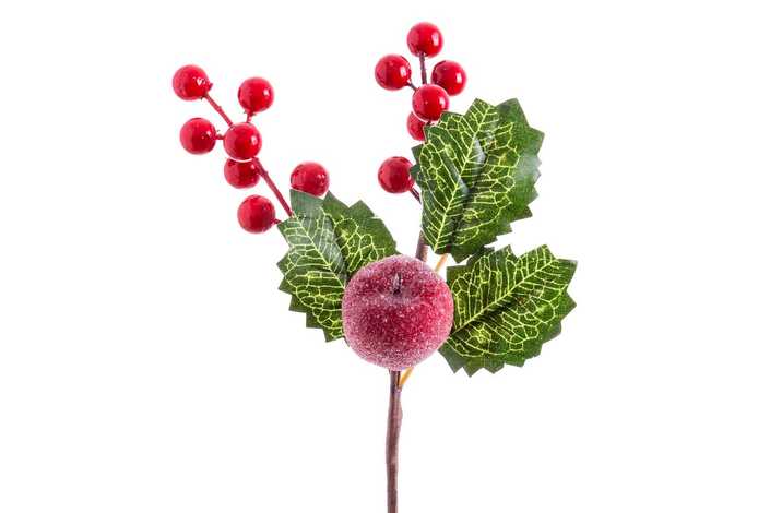 PICK ACEBO CON HOJAS ROJO 21 CM