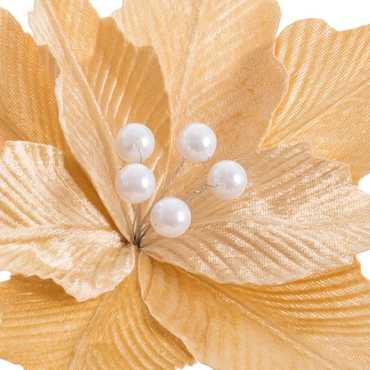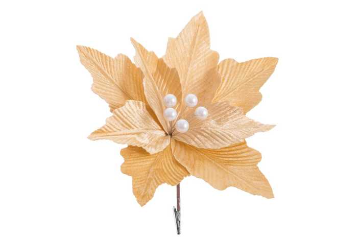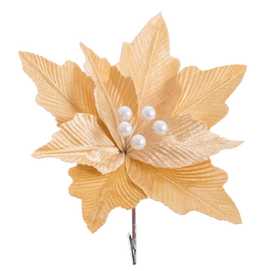 PICK POINSETTIA CON CLIP POLIESTER ORO